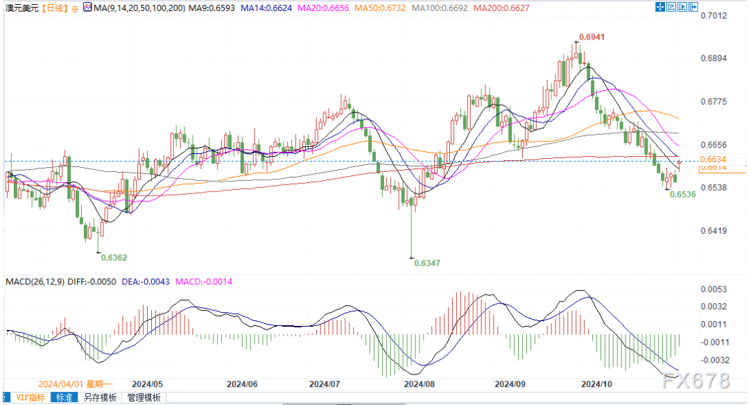 澳元兑好意思元日线图北京时候11月4日11:33,澳元兑好意思元报0.6613/14